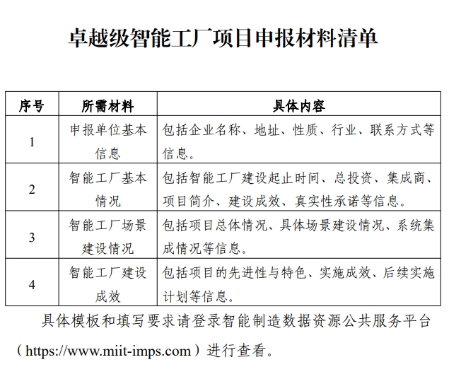 2.智能工厂梯度培育要素条件3.卓越级智能工厂项目申报材料清单