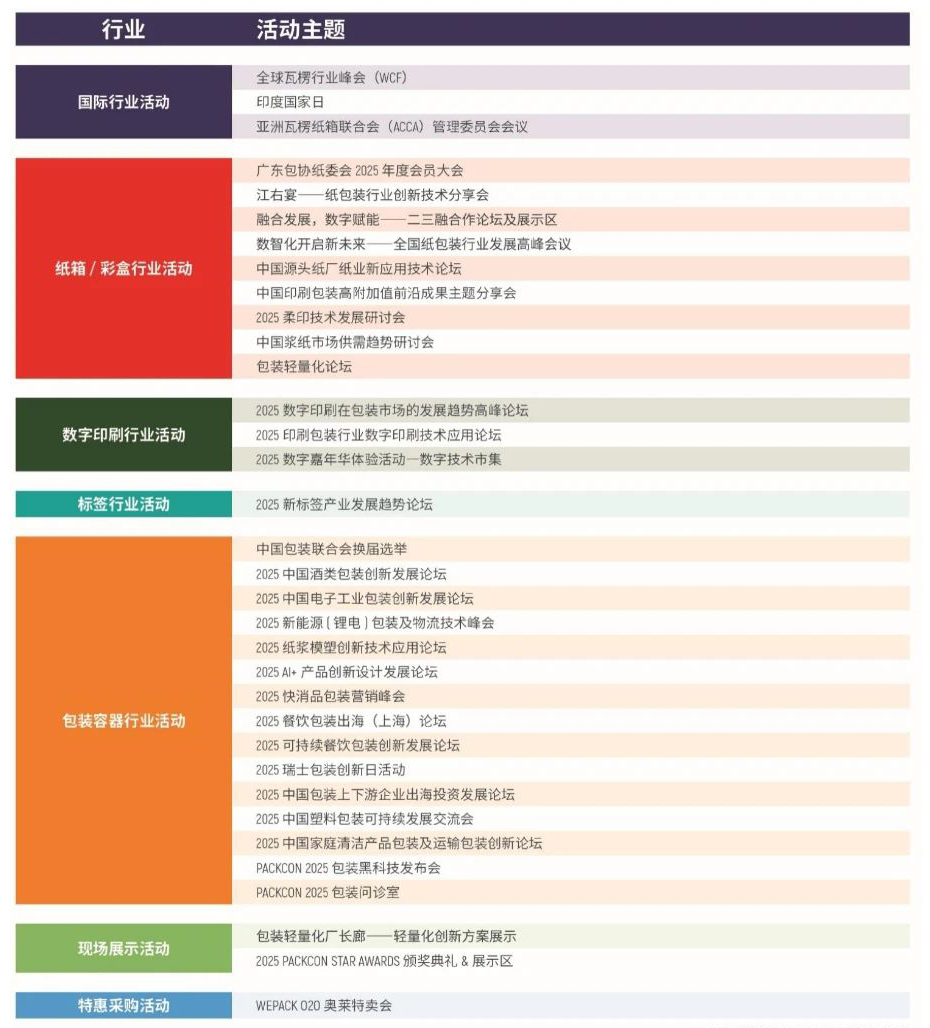 WEPACK世界包装工业博览会扎根中国市场25年,与中国包装印刷行业共同成长,发展迅速,已成为全球包装行业共享中国发展机遇的重要平台。展会汇聚全球包装产业链核心力量,囊括瓦楞、彩盒、包装容器、纸张、数字印刷、食品包装加工等全包装产业链供应商品牌,汇聚大量全球首发、亚洲首发等最新趋势性技术,高性价比产品等。