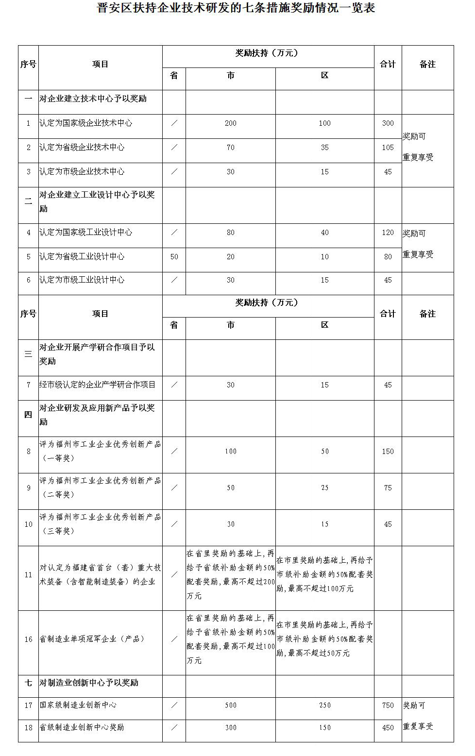 对新认定的国家技术创新示范企业,在省里奖励及市级给予一次性奖励100万元的基础上,区级再叠加配套奖励50万元。