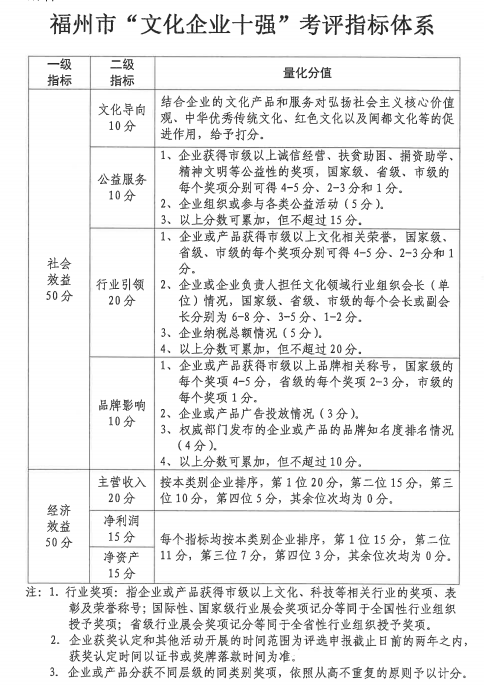 5.同一申报主体不能同时参加福州市“文化企业十强”和“最具潜力文化企业”评选。