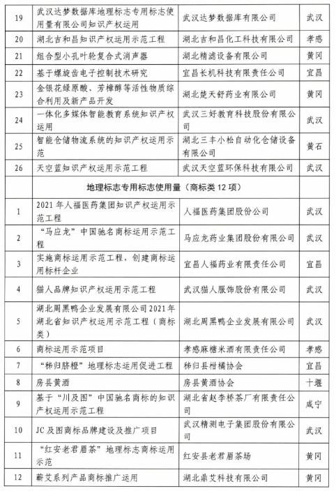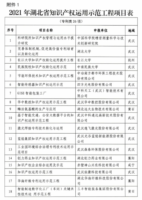 1.2021年湖北省知识产权运用示范工程项目名单