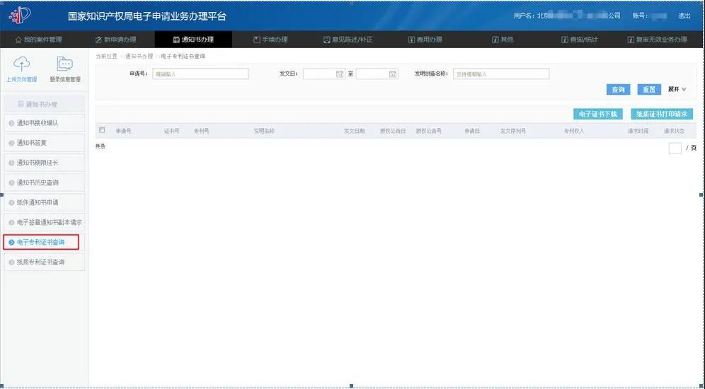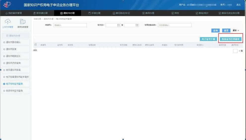 1.电子专利证书下载、电子专利证书纸质证书请求: