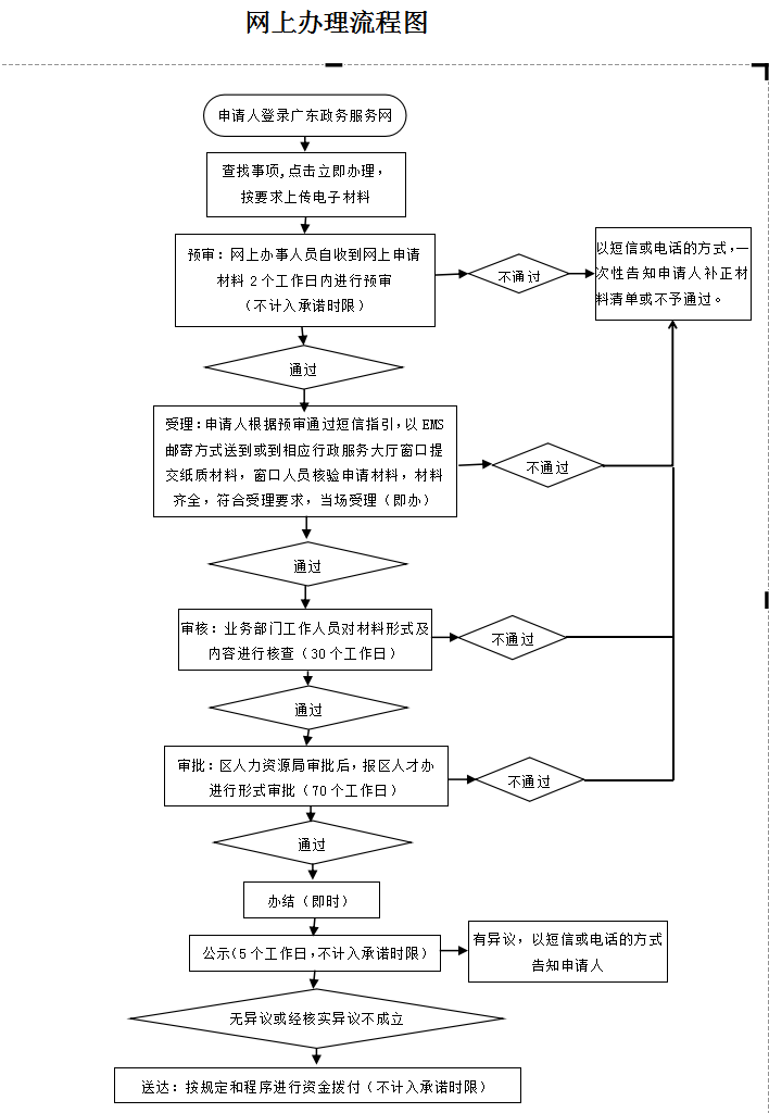6.审批 龙华区人力资源局审批通过后,报人才工作领导小组办公室审定各项业务,按规定和程序进行形式审批,需经上会程序,为70个工作日。