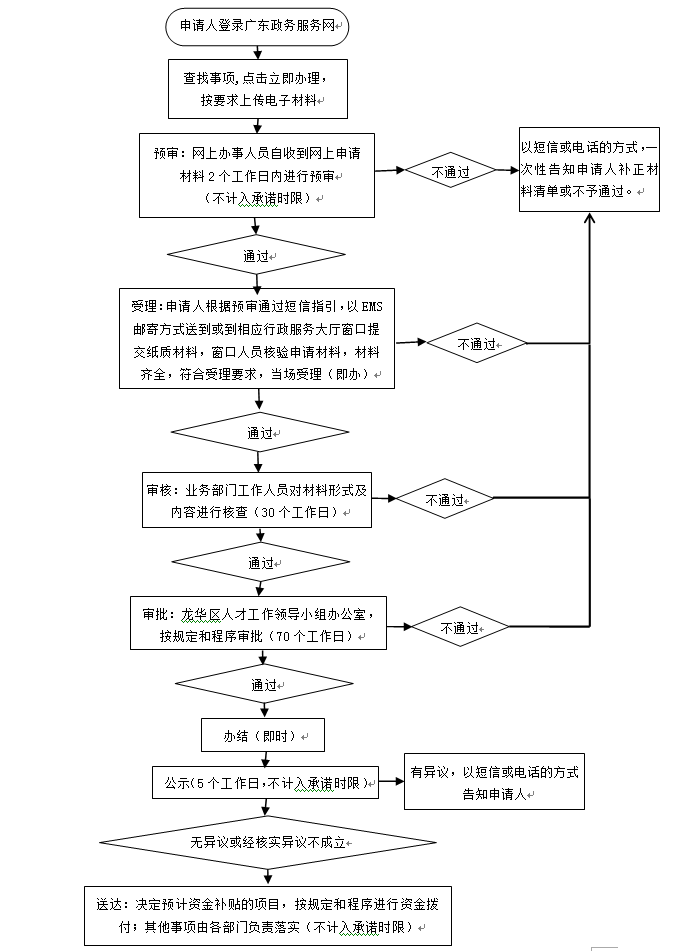6.审批 龙华区人才工作领导小组办公室审定各项资助或相关保障,按规定和程序审批,需经上会程序,为70个工作日。