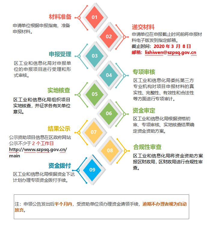 申请单位在申报截止时间前将申报材料电子版发到深圳市坪山区工业和信息化局指定受理邮箱。