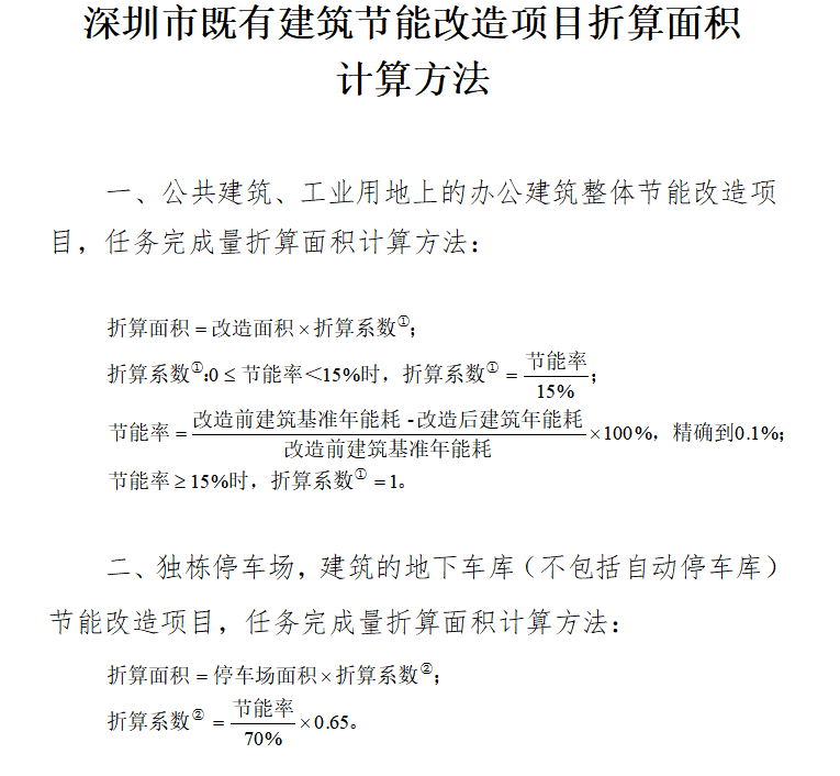 (一)深圳市行政区域(含深汕合作区)的改造项目,包括公共建筑、工业用地上的办公建筑、地下车库部分以及独栋停车场(不包括自动停车库);