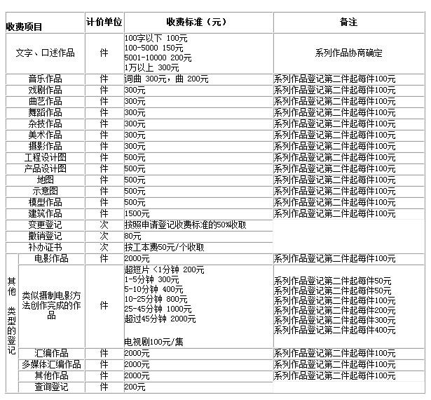 一次性申请登记作品数量较大的或其他特殊情况,协商确定收费标准。