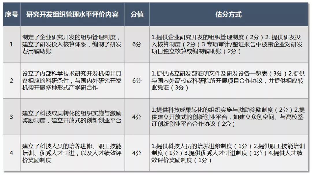 该指标根据企业研究开发与技术创新组织管理的总体情况,结合以下几项指标进行评价(≤20分)。