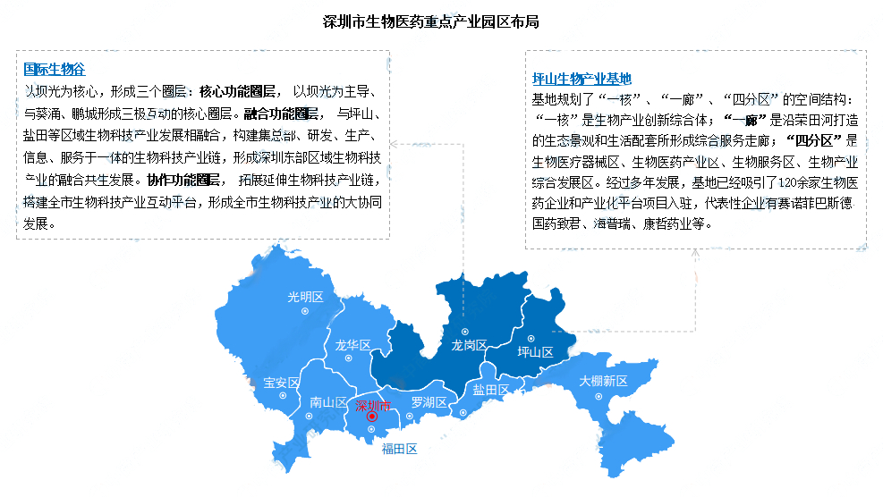 从重点产业园区规划来看,目前,深圳基本形成了以坪山国家生物产业基地、国际生物谷两大生物医药产业集聚区为主导的产业空间格局。
