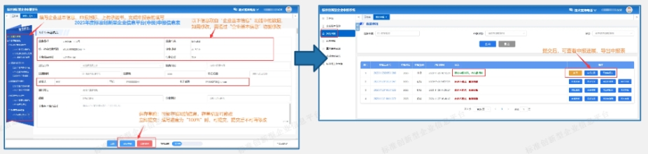 1.企业可通过“我的申报”功能,查看已存草稿、已提交的申报记录,如下操作:1.提交申报后,可查看申报进展,导出Word版申报表。