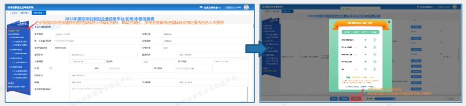 1.企业在申报标准创新型企业(初级)时,根据企业实际情况选择相应的指标并上传证明材料,提交后系统会根据企业选择的指标自动判定是否符合入库条件,