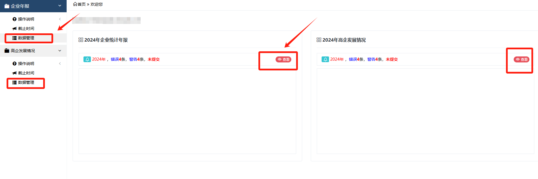 注意事项:1.浏览器版本要求,建议使用360(极速模式)、360(兼容模式,内核IE9以上)、chrome、IE9或以上版本;2.点击“?”,会弹出相应的指标说明;3.“小眼睛”,会弹出2023年、2024年两个年度数据对比;4.每填完1步,先点击“保存数据”,再点击“下一步”。