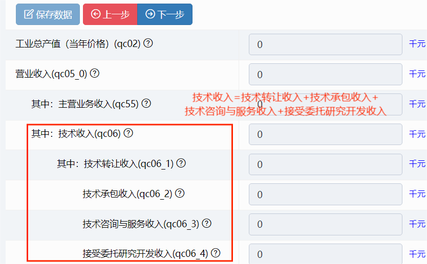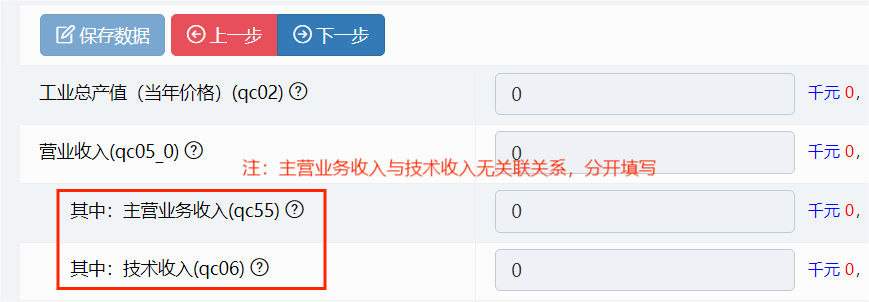 注意事项:①qb16,企业按照主营产品进行填报,高企不得选择“900.非高技术”;②qb16_1,根据《高新技术企业认定申请书》填报,三级领域六位代码。不得选择000000(无核心技术企业)选项;③基本信息要准确完整,企业的基本信息主要是用来进行企业分类,如果基本信息填写有误,后续的数据内容便无法准确分类及监测。