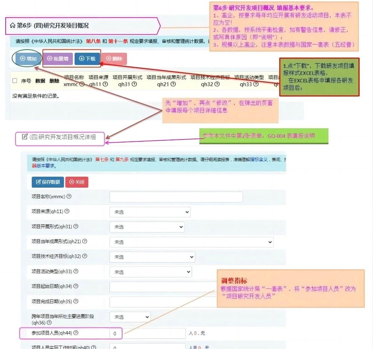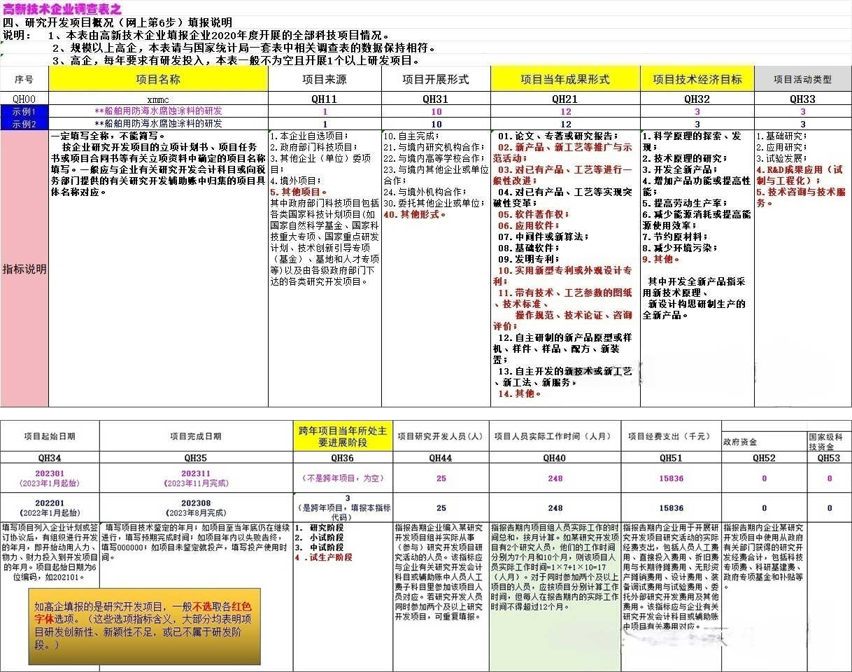 2.报表要求的指标,均须填报,特别是第六步研究开发项目概况,不能为0。