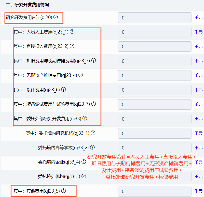 与第7步中“研究开发费用合计(qj20)"相关联,不能为空!