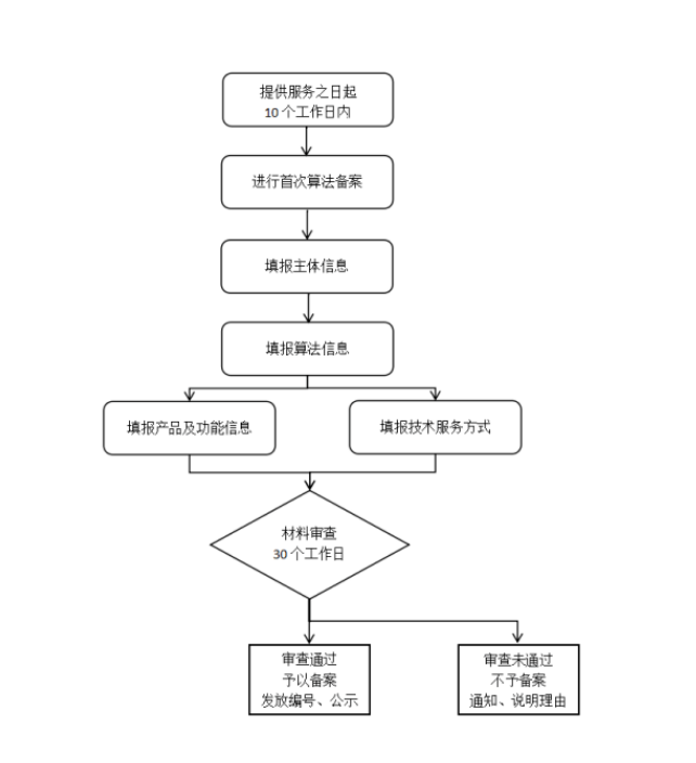 算法备案提交后由国家网信办在线审核,主体部分一般5-7个工作日出结果,通过的进一步的做算法备案部分的填报;未通过的根据驳回原因做补正修改;算法部分一般审核周期10-15工作日,这部分是重点难点,基本上会驳回修改几次,到最后持续满30日左右未驳回基本是通过的状态,等到统一批次进行公示即可。