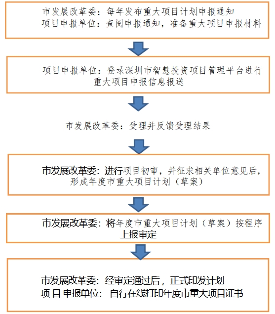 深圳市重大项目是指符合我市产业发展导向,对经济社 会发展具有重大影响和带动作用,投资规模较大,并按规定 程序列入年度重大项目计划的固定资产投资项目。