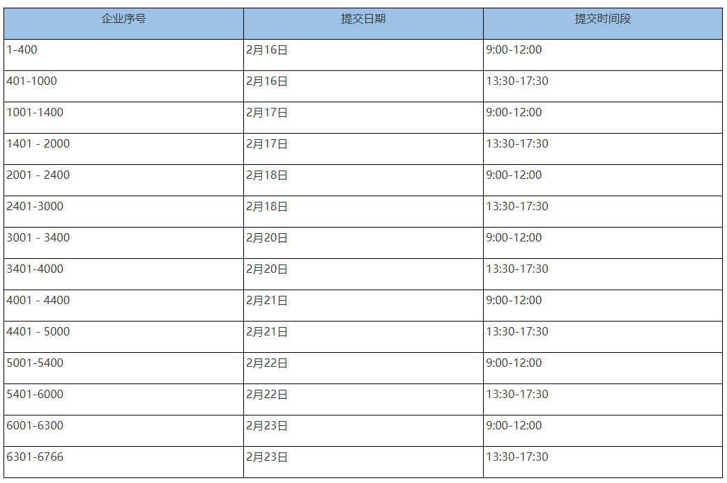 提交时间:为保证资料审核工作有序开展,请各企业按照下表安排到现场提交申请材料和拨款材料。
