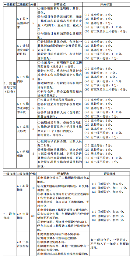 为贯彻落实国家和省工伤预防五年行动计划(2021-2025年),完善工伤预防标准体系,健全工伤预防项目管理制度,根据《工伤预防费使用管理暂行办法》(人社部规〔2017〕13号)、《关于工伤预防项目实施的暂行办法》(粤人社规〔2018〕6号)等有关规定,结合实际,制定《深圳市工伤预防项目初评标准(试行)》和《深圳市工伤预防项目评审标准(试行)》,适用于本市相关行业协会和大中型企业等社会组织申报的工伤预防项目的初评和评审,现予印发,请遵照执行。