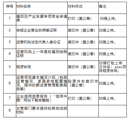 第三步:在线打印《福田区产业发展专项资金申请表》等信息表格及提供《申请指南》所列的材料,将纸质材料(A4纸)按顺序装订成册(一式一份),递交到“福田区政务服务大厅”指定窗口,受理部门对材料完整性、真实性、有效性进行初步审核。