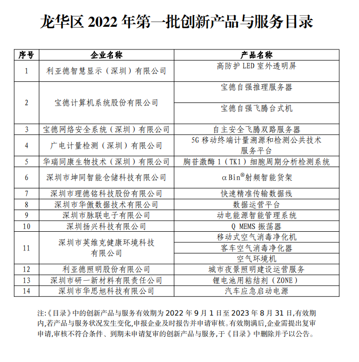 龙华区组织申报2022年第二批龙华区创新产品与服务