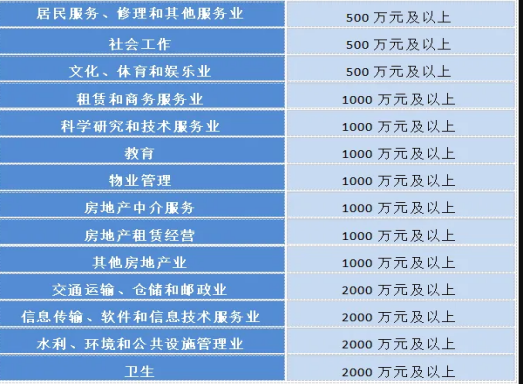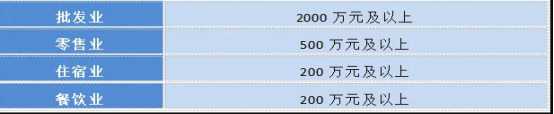 本年度主营业务收入累计达以下标准的批发和零售业、住宿和餐饮业单位: