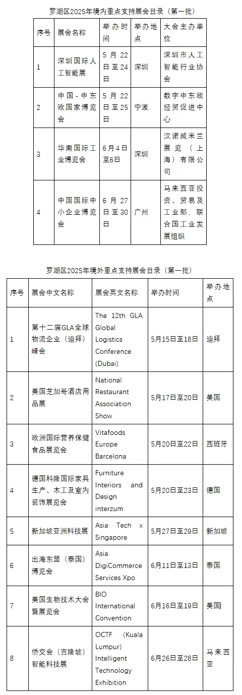 罗湖区2025年境内外重点支持展会目录(第一批)