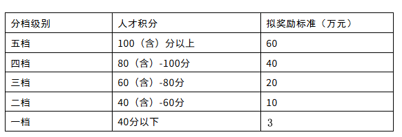 每家企业支持人数最高不超过其缴纳社保员工数的10%(资助人数不足1人时,可资助1人),最多支持3人。资助标准按照资助对象人才积分水平分档支持,每人最高不超过60万元。