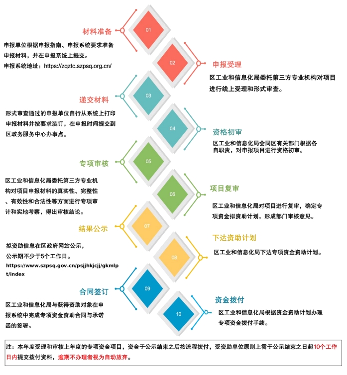 区工业和信息化局是申请项目的受理部门,负责线上受理和纸质资料受理。不符合受理条件的,不予受理。资料不全的,应一次性告知申请对象需补齐的资料。采取“分期核准、分期批复”的方式对申报项目进行处理,本年度受理和审核上一年度的专项资金项目。