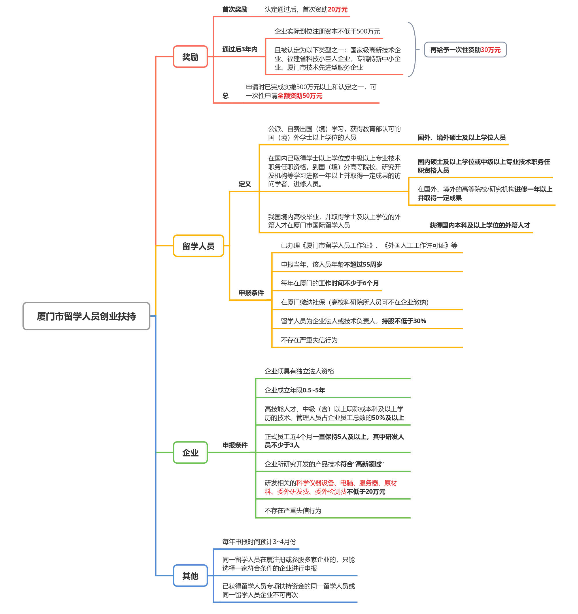 1.同一留学人员在厦注册或参股多家企业的,只能选择一家符合条件的企业进行申报,已获得留学人员专项扶持资金的同一留学人员或同一留学人员企业不可再次申报留学人员专项扶持资金。