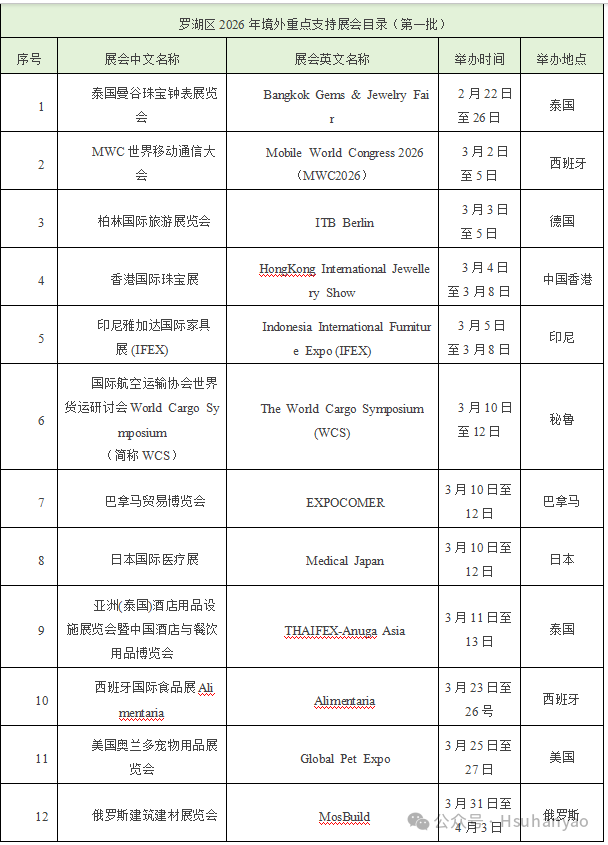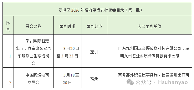 罗湖区发布2026年境内外重点支持展会目录(第一批)